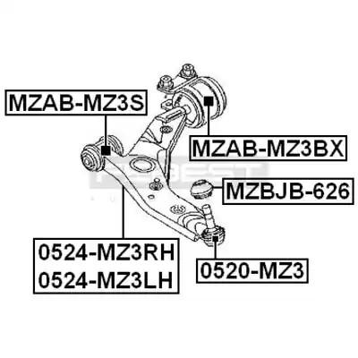 MZAB-MZ3BX | Rear Bushing Without Bracket, Front Control Arm for Ford, Mazda, Volvo